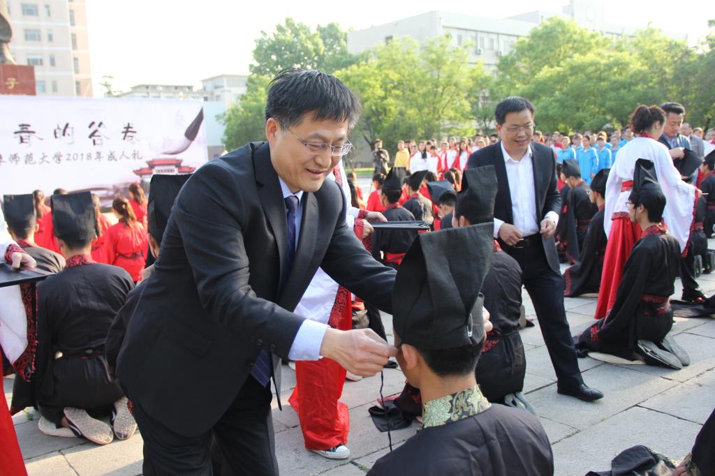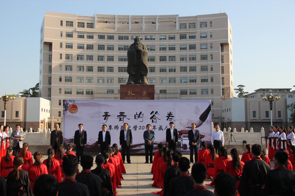 5月4日,五四青年节之际,快猫视频 第十一届“孔子文化月”系列活动之大学生成人礼在孔子文化广场举行。党委常委、副校长辛杰,党委宣传部部长纪洪涛,教务处处长胡钦晓,校团委书记宋国栋,学生工作处副处长杨东,快猫视频 党委副书记王慕东,院长成积春,教育学院党委副书记徐庆海等领导出席了活动,各学院团委书记、辅导员及学生代表共同参加了活动,活动由校团委副书记孔轶众主持。
