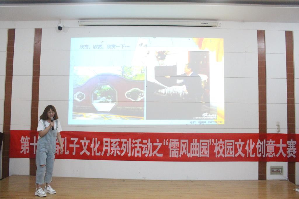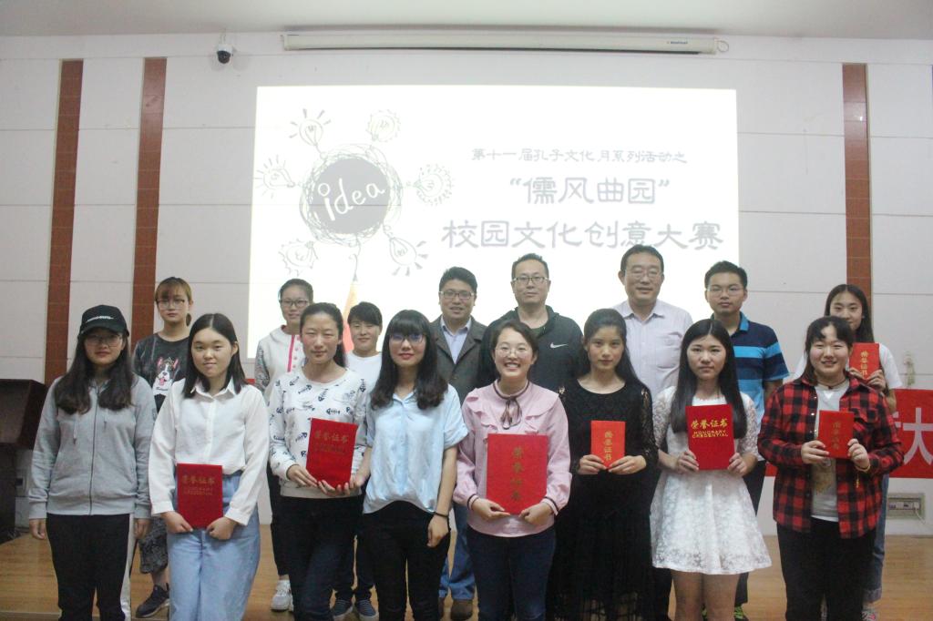 5月12日下午,第十一届孔子文化月系列活动之“儒风曲园”校园文化创意大赛决赛在图书馆一楼报告厅圆满落幕。本次比赛邀请了快猫视频 韩锋、骆明、刘庆余、乌云花四位老师以及社团联合会主席霍文博担任评委。