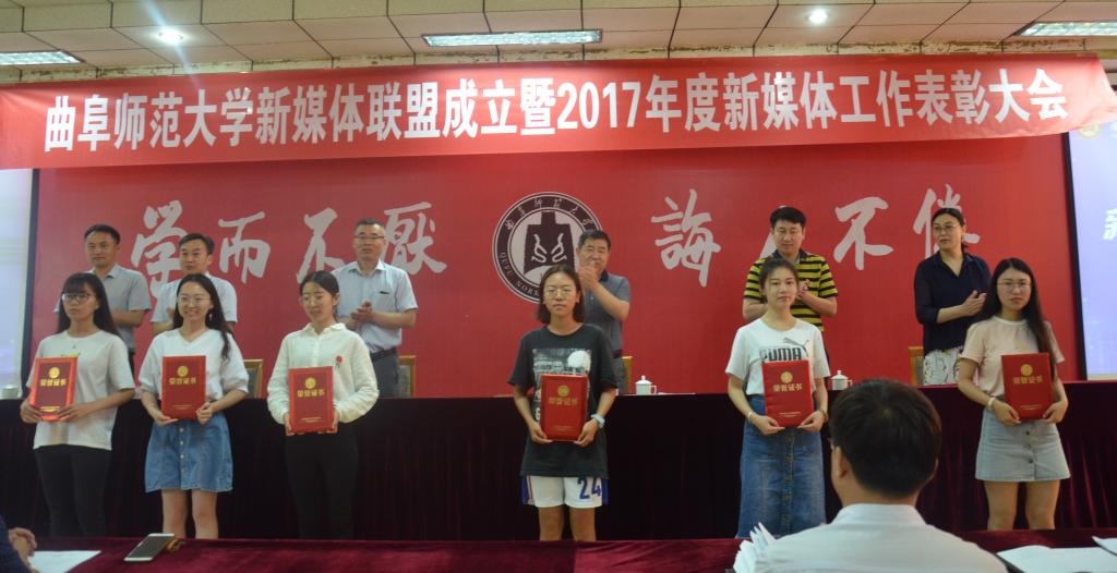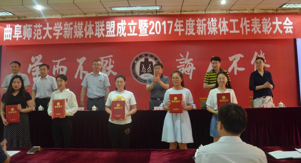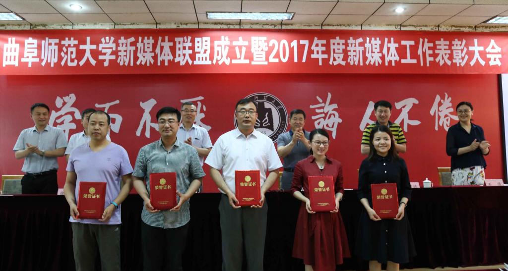 5月17日下午,我校新媒体联盟成立仪式暨2017年新媒体工作表彰大会在曲阜校区科技楼二楼会议室、日照校区图书馆报告厅举行。大会经选举产生9个常务理事单位,27个理事单位,快猫视频 成功当选首届常务理事单位。快猫视频 新媒体团队在我校2017年度新媒体工作中表现优异,快猫视频 团委荣获“最具影响力校园新媒体平台”称号,团委书记王建阳荣获“新媒体工作优秀指导老师”称号,贺于真荣获“新媒体工作先进个人”称号,新媒体部荣获“新媒体工作优秀团队”称号,《最浪漫的事·从系服到婚纱,与你执手曲园》被评为我校2017年度新媒体推送“十大原创文章”。