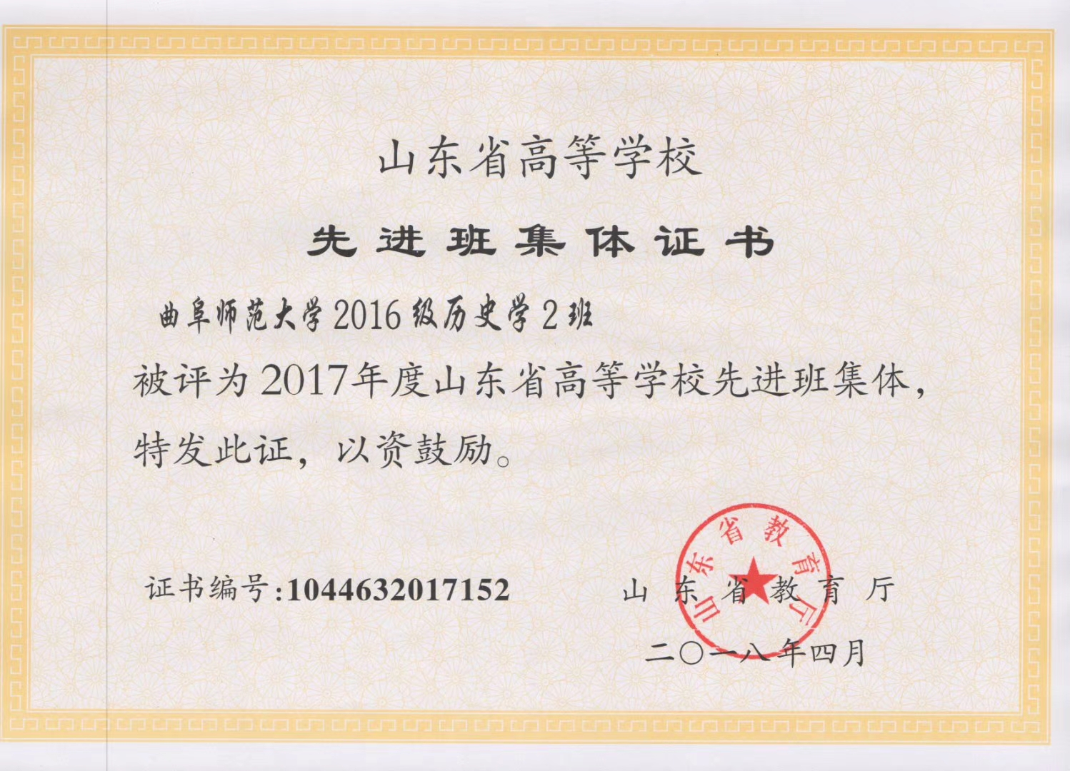 近日,2017年度山东省高等学校优秀学生、优秀学生干部和先进班集体评选活动落下帷幕。经过申报、评审等层层筛选,快猫视频 2016级历史二班被评为“2017年度山东省高等学校先进班集体”,贺于真、张兆成同学被评为“2017年度山东省高等学校优秀学生”。