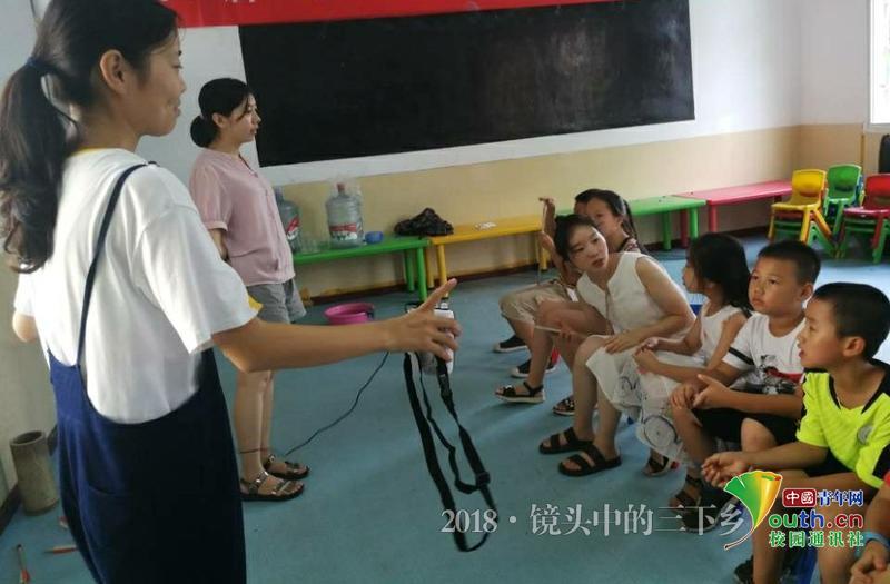 系列活动:童声细语,用心浇灌少年 经过几天的相处交流后,两组队员按照计划分别针对不同班级、不同年龄段的小朋友的特点准备了节目,并且邀请他们的家人来观看表演。 队员们教大些的孩子们吟诵《木兰辞》、《劝学》;教小朋友们唱儿歌。短短几个小时的接触时间在给孩子们纠正字词、音调中转眼即逝,队员们和小朋友们也建立起深厚的友谊。尽管他们的调皮、贪玩有时会令队员们不知所措、令队员们急躁;尽管他们经常忘词。但是小朋友们的真诚、友善与纯真令队员们沉醉其中,她们深深地喜欢上了这群可爱的孩子们。看着孩子们能够有模有样的吟诵出自己教的歌曲,队员们的自豪之情也油然而生。这次活动给大家带来了不一样的体验,带来了一段难忘的时光。