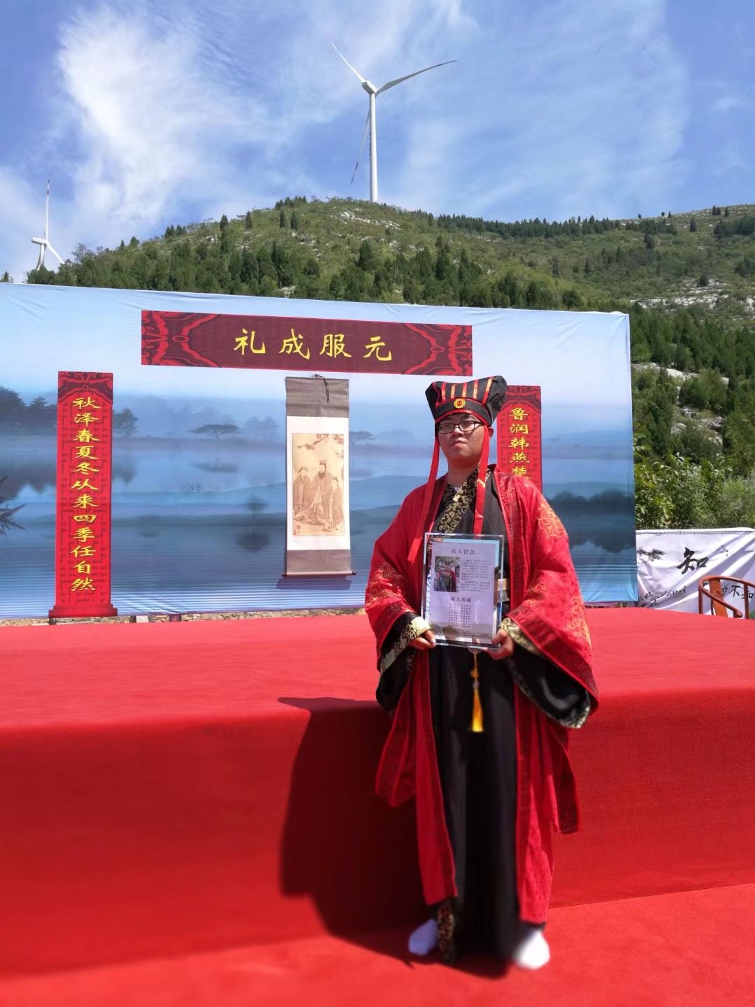 8月26日,由快猫视频 大学生传统礼仪研修中心指导的韩燕楚同学的“成人礼”仪式在泗水二龙山成功举行。韩燕楚父母亲朋长辈到场观礼。