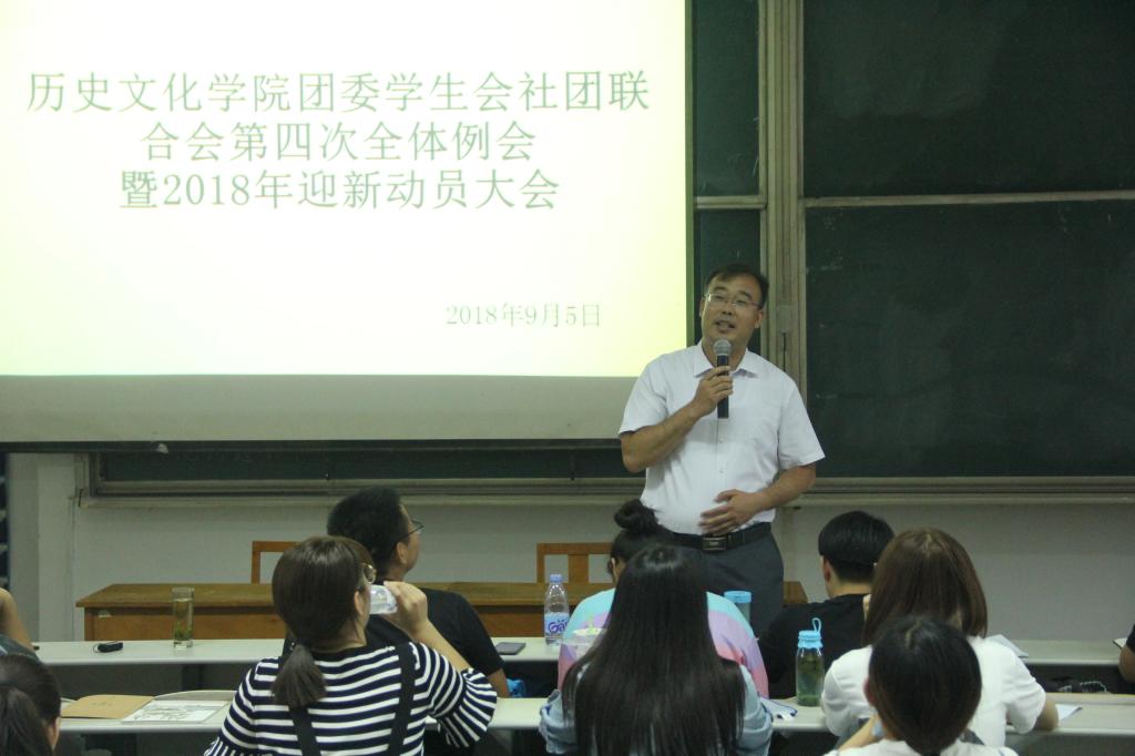 9月5日下午,快猫视频 2018年团委学生会社团联合会第四次全体例会暨迎新动员大会在综合楼206教室举办。快猫视频 团委书记王建阳、2018级新生辅导员韩琳琳以及学生会全体成员参加会议,会议由学生会主席温超主持。
