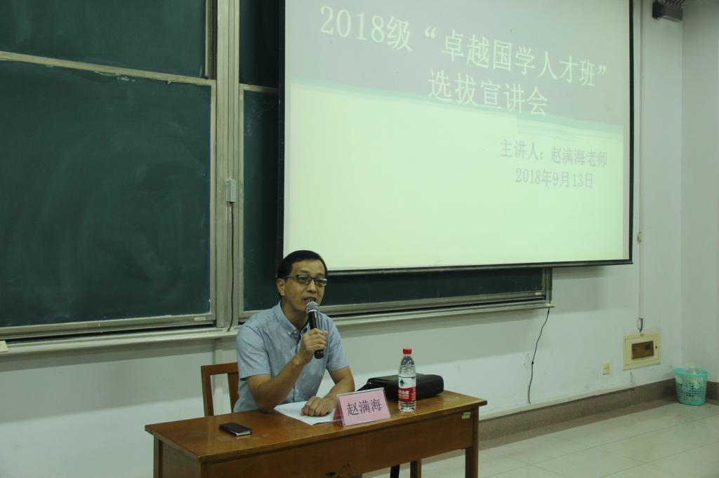 9月13日晚,快猫视频 国学教研室主任赵满海在综合楼205教室面向2018级历史班同学进行了2018级国学卓越班分班宣讲。
