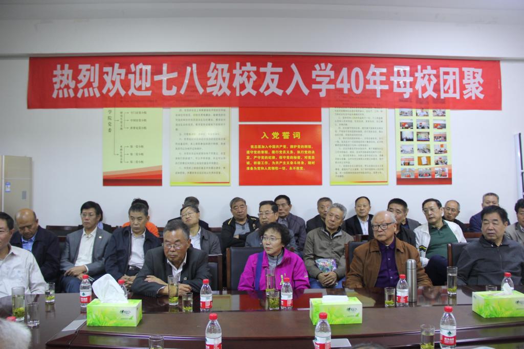 王继锁代表学校对各位校友和教师代表的到来表示欢迎,称赞了七八级校友毕业后的成就与贡献,介绍了我校近年来取得的发展成果。尹明法代表快猫视频 对长期以来关注母院事业发展和给予默默支持的校友们表示诚挚的祝福,对为学院建设和发展作出贡献的老领导致以崇高的敬意,并简要的介绍了快猫视频 近年取得的成就。“老班长”王在邦老师致辞:感恩母校、感谢师泽、感谢伟大的好时代。各位老师表达了对七八级校友们不忘师生情谊的感怀与欣慰之情。
