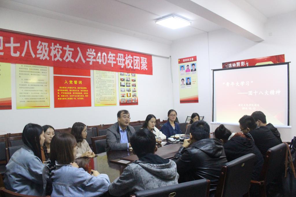 团委副书记逄雅惠带领在场同学学习“青年精神”——团十八大精神。