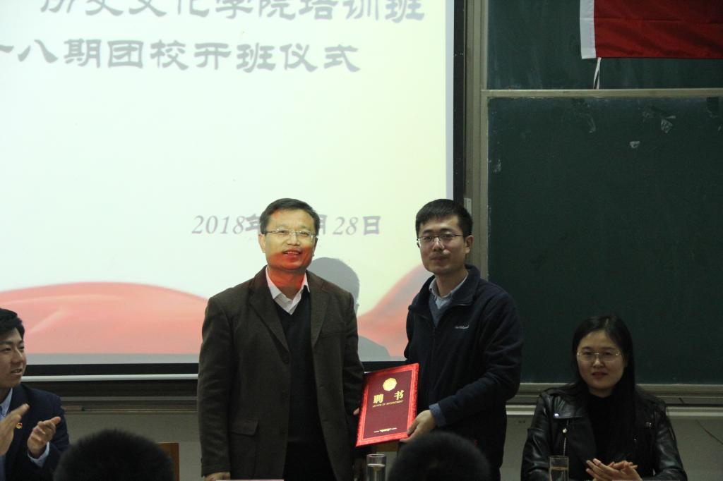 仪式在雄壮的国歌声中拉开帷幕。王慕东向“青马工程”培训班的开班表示了祝贺,并对参加培训班的学院学生干部表达了深切的期望。韩琳琳宣读了2018年“青马工程”培训方案并进行了详细的说明。培训学员代表、2017级历史二班团支书庄亚婷同学发言,她代表全体学员向学院组织“青马工程”培训班表示感谢,并承诺将珍惜培训机会,以身作则,争做优秀青年马克思主义骨干。仪式上,王慕东代表校团委为李文振颁发了聘书。开班仪式后,李文振为大家作了题为“新闻报道基本原则与应用””的首场报告,报告中李文振老师用详尽的语言为我们介绍了照片报道及拍照时的技巧,从文字报道的标题、内容、结构和写作基本原则等方面进行了指导。