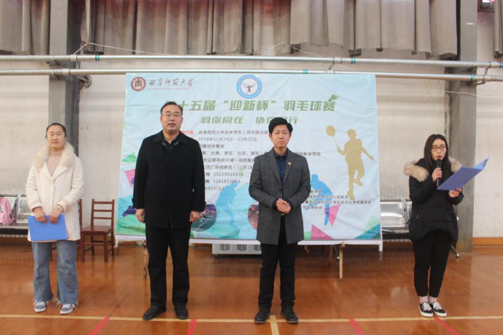 11月25日下午,由我校体育教学部及快猫视频 团委主办,羽毛球协会承办的2018年快猫视频 第十五届“迎新杯”羽毛球赛于西操场体育馆圆满落幕。快猫视频 副院长吕厚轩、体育教学部赵哲哲、校团委兼职副书记申潜出席闭幕式并为获奖选手颁奖。