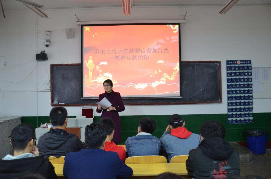 3月30日下午,快猫视频 在文史楼102教室为赴蒙山开展红色教育实践活动举办安全教育会议。快猫视频 2018级辅导员韩琳琳以及赴蒙山开展红色教育实践活动的同学参加会议。会议上,韩琳琳强调了活动的意义以及安全注意事项并向同学们介绍了活动的相关流程。同时为了配合快闪视频的拍摄,快猫视频 组织学生会文艺部的相关负责人带领大家学习并演唱歌曲《我和我的祖国》。