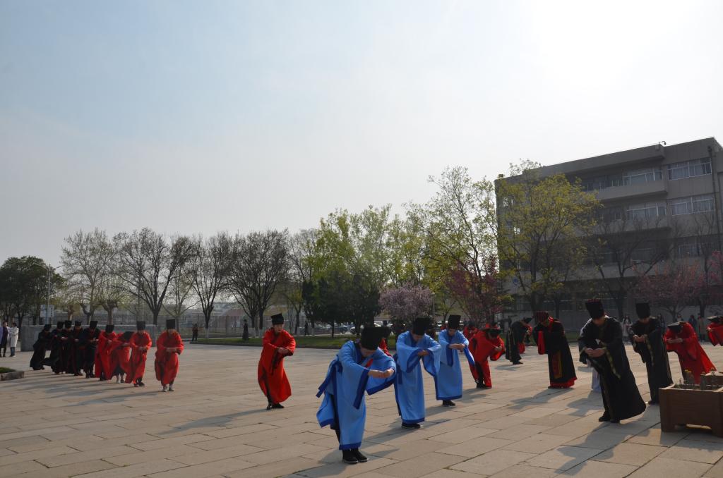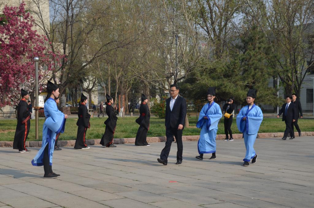 “有朋自远方来,不亦乐乎”。迎宾礼是中国古代迎接重要宾客的礼节,代表了礼敬、和睦。快猫视频 传统礼仪队队员身着汉服、头顶儒冠,按照礼仪仪程,在孔子像前举行盛大的迎宾礼以欢迎孔垂长的到来,整场仪式庄严古朴。随后,孔垂长在快猫视频 传统礼仪队的引导下,参观教师博物馆并提出宝贵意见。