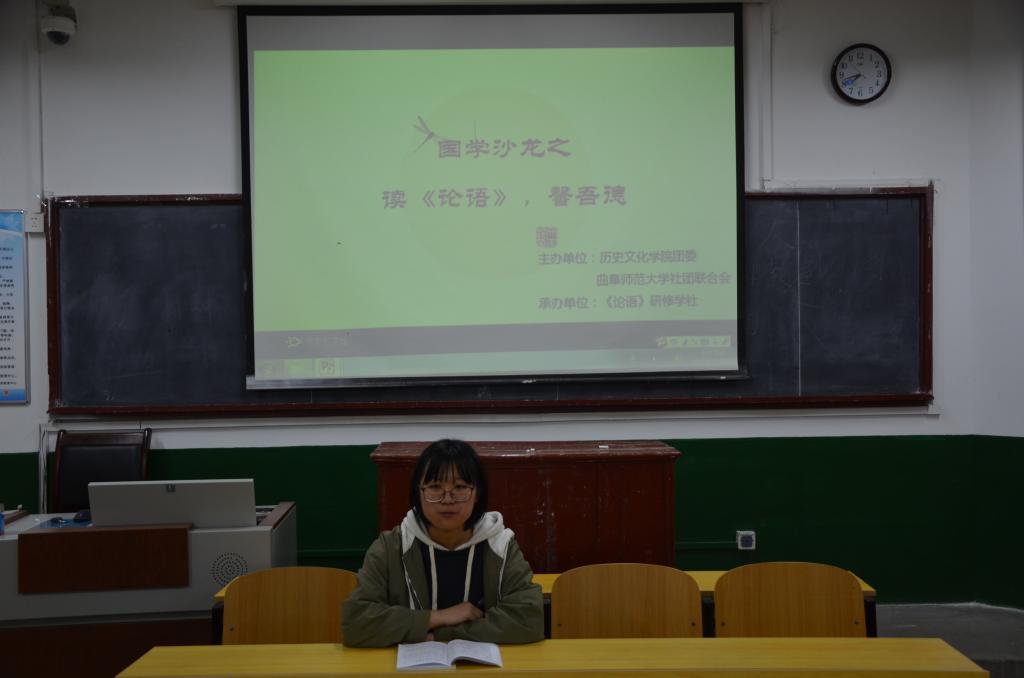 4月19日晚,由快猫视频 《论语》研修学社承办的第十一届孔子文化月系列活动之国学沙龙——“读《论语》, 馨吾德”在文史楼309教室举行。《论语》研修学社成员和2017级、2018级国学班部分同学参加活动,活动由徐鹏斐主持。