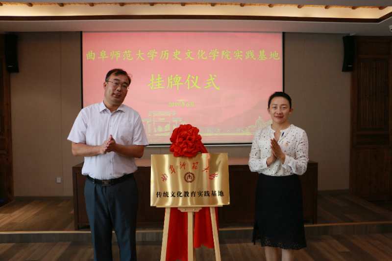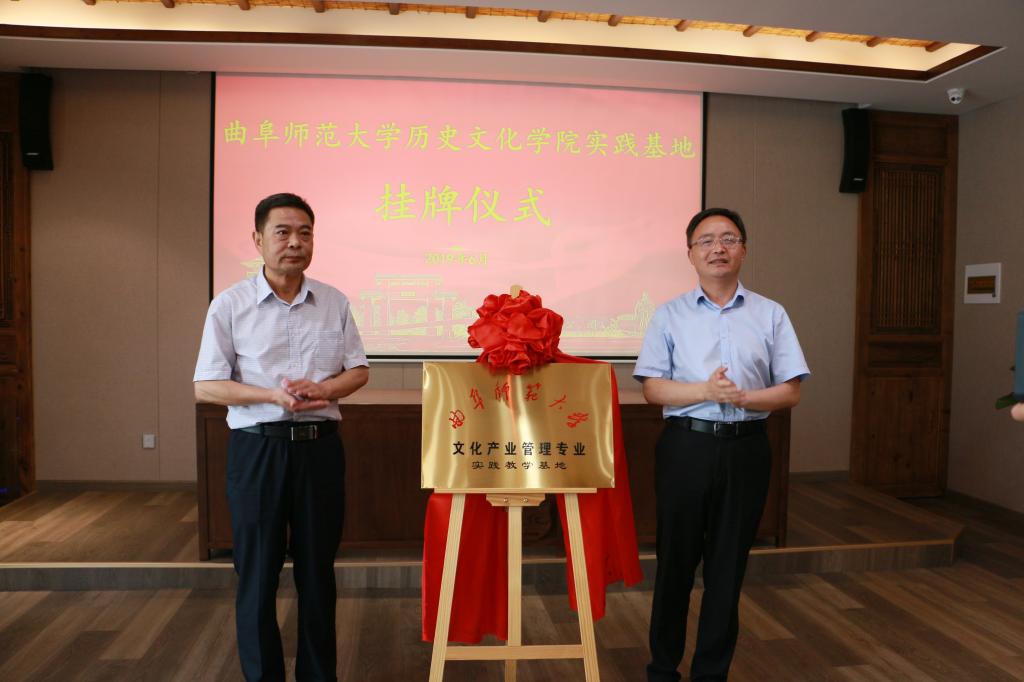 6月21日上午,快猫视频 在复圣文化旅游区举行文化产业管理专业实践教学基地及传统文化教学实践基地揭牌仪式。学院党委书记尹明法、副院长吕厚轩、教工党支部书记及副教授张俊成、团委书记王建阳、续大鹏老师;宁阳县委常委及组织部长周鹏飞、宁阳团县委书记李琳、县委宣传部副部长孙雁龙、县文旅局党组成员及副局长李全华和县统筹公司及山东复圣文化产业股份有限公司相关同志出席仪式。