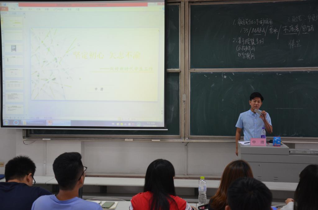 9月4日下午,快猫视频 在综合楼106教室举办2019年秋季学生干部成长论坛暨迎新动员大会。快猫视频 党委副书记王建阳,2018级辅导员韩琳琳,2017级辅导员刘贤贤,2019 级辅导员刘润欣,快猫视频 团委兼职副书记、快猫视频 研究生会主席申潜,快猫视频 第20届研究生支教团成员、快猫视频 2019级研究生田蕾以及学生会全体成员参加本次活动,活动由快猫视频 团委副书记庄亚婷主持。