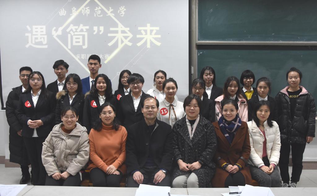 11月30日下午,“遇‘简’未来”求职技能大赛在综合楼101教室举行。学生工作处副处长杨东,后勤管理处副处长张石磊,就业指导中心主任石璐,化学与化工学院团委书记孙金玲,校团委李玲出席大赛并担任评委。
