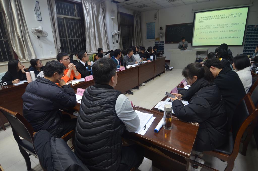 12月8日晚,快猫视频 《论语》研修学社承办的国学沙龙系列活动之晚清民国学人论著活动在文史楼520教室成功举办。学院副院长吕厚轩、赵满海老师出席活动,胡杰文、卢官一、史修鼎、尹吉祥、龙子涵同学参与活动并发表读书报告。活动由快猫视频 胡杰文同学主持。