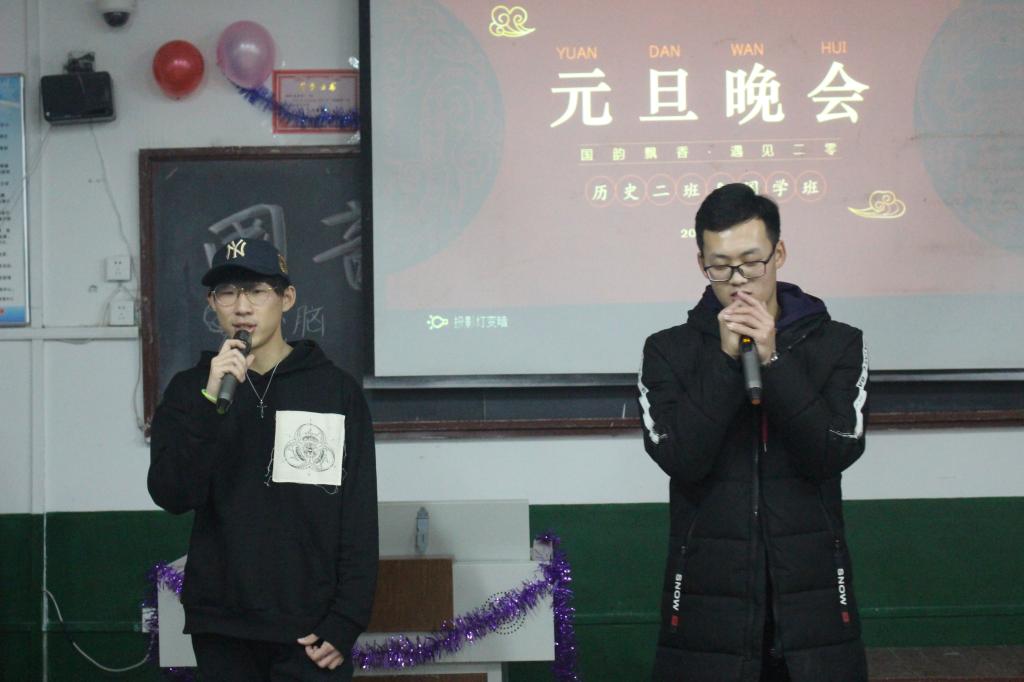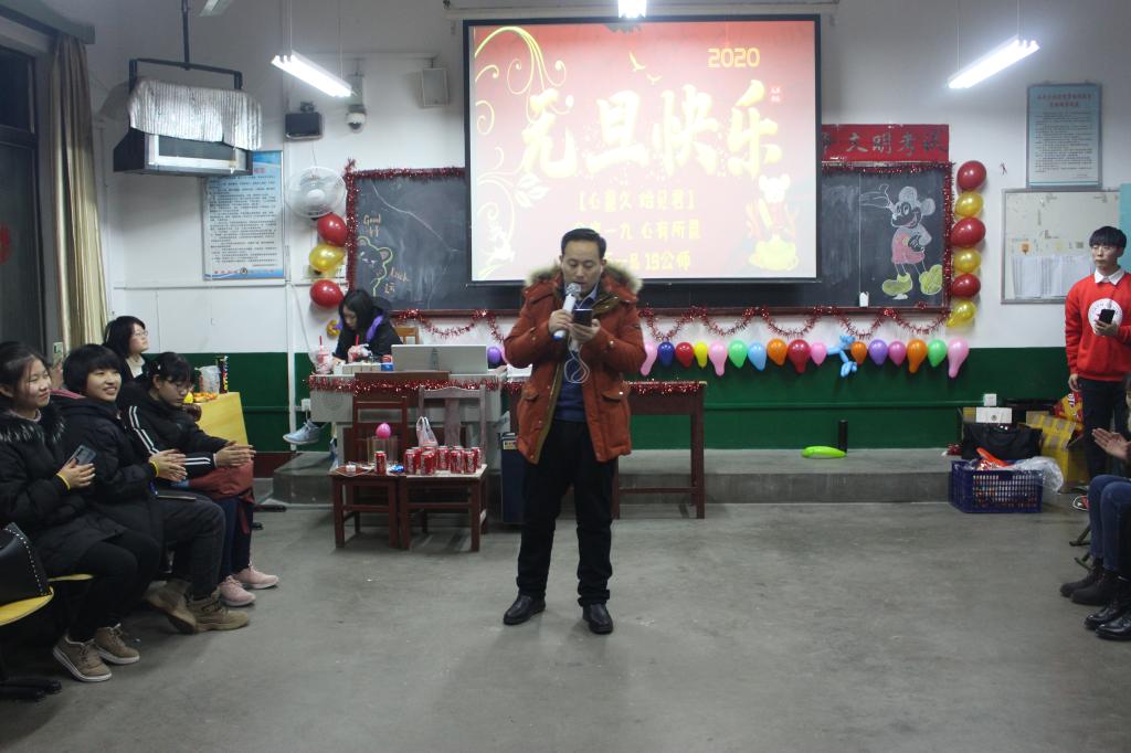 12月31日晚,快猫视频 2019级同学们分别在文史楼102、302和411教室举行元旦晚会。党委副书记王建阳、2019级辅导员刘润欣等老师到各班与同学们共庆元旦佳节。