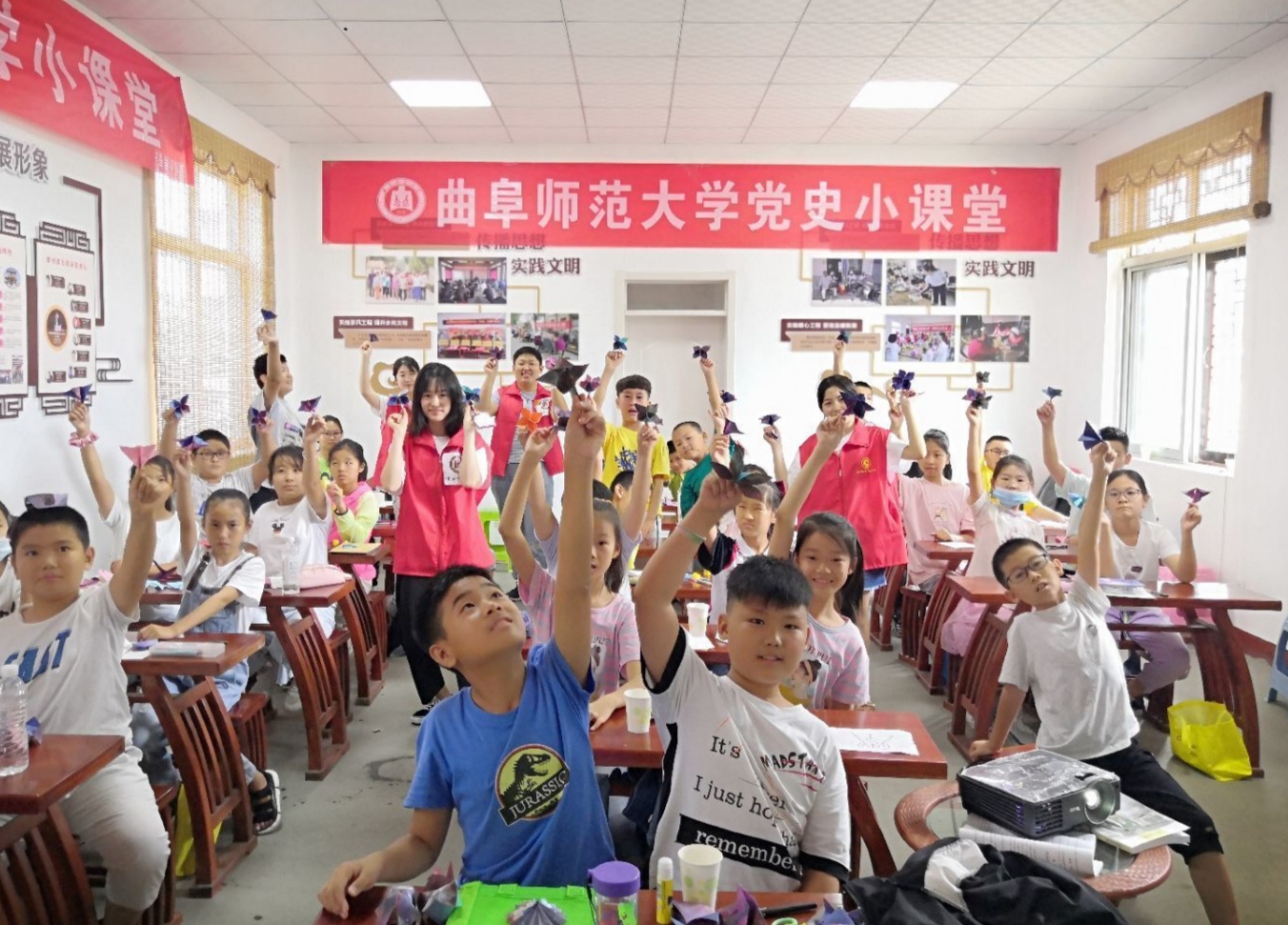 志愿者们精心设计了“国旗党旗知多少”的专项内容,从国旗的由来和五角星的含义等多方面讲解了关于国旗党旗的相关知识。通过开设红色经典故事课程,志愿者与学生一起观看了中国人民解放军视频和红色经典影片,对学生进行红色教育。应当地团委邀请,志愿者前往西颜村的孟子学堂,为当地学生开展了折纸等趣味课程,并讲解了地理知识。志愿者还进行了学生家访活动。同时,志愿者举办了“情暖八一!青年学生听抗战老兵讲述红色故事”的活动,与邹城市唐村镇十余名小学生一起看望了抗战老兵李法真老人,活动受到媒体的广泛关注。