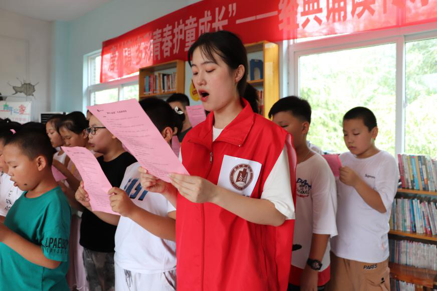 团队志愿者发挥历史学特长,结合当地学生的实际情况,设计了“党史国史家乡史之红色精神教育课”、“承前启后,继往开来之红色经典诵读课”、“国旗党旗知多少专项课程”等内容形式丰富多样的系列课程。志愿者通过提问的形式向学生普及了党史、国史知识和国旗党旗的相关知识等,希望更好地弘扬与传播爱国主义精神。同时,志愿者还增加了手工制作国旗党旗、红色经典故事课、“品味革命经典,感悟百年党史”诵读等活动,使学生在娱乐中进一步了解革命历史,培养爱国情怀。