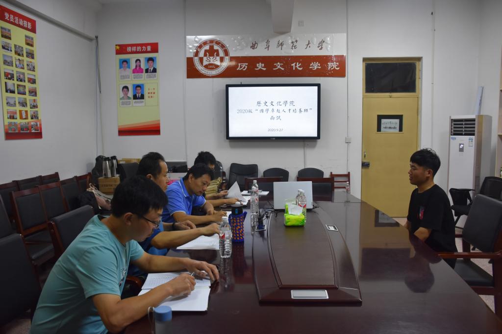 9月27日晚,快猫视频 2020级“卓越国学人才”班选拔测试在文史楼302和二楼会议室举行。快猫视频 刘伟、韩锋、王建阳等老师担任此次选拔评委,来自2020级的历史学新生参加选拔测试。