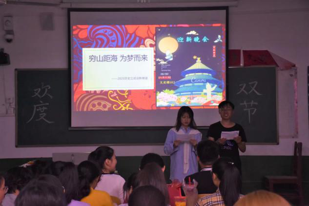 10月1日晚,为贺祖国之诞、赴明月之约,使在校新生感受到国与家的温暖,快猫视频 在文史楼以班级为单位为2020级新生举行晚会。快猫视频 辅导员刘贤贤、刘润欣、蔺琦琦、闫浩与新生共同庆祝节日。