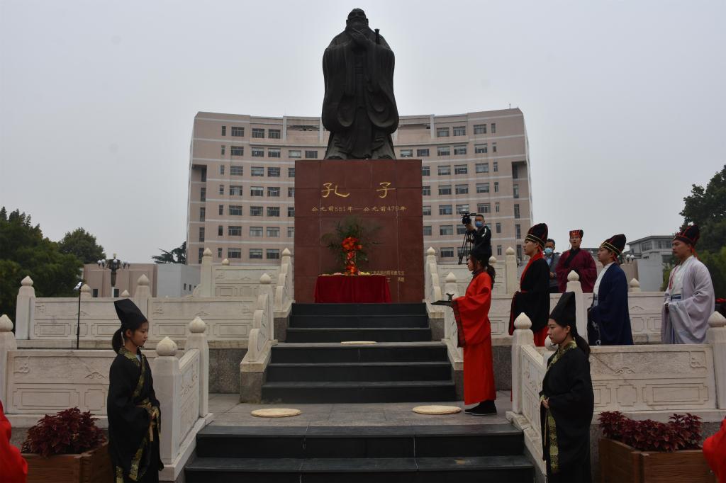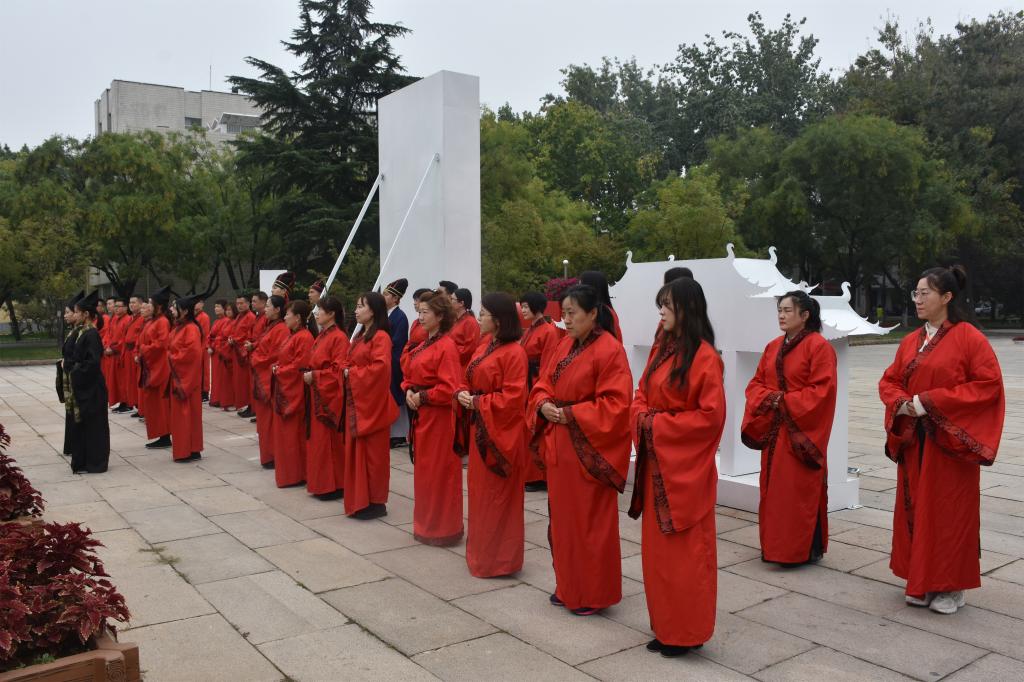 10月13日上午,快猫视频 传统礼仪研修中心在孔子文化广场为新疆生产建设兵团第十二师骨干教师举行了祭孔仪式和射礼的展演。