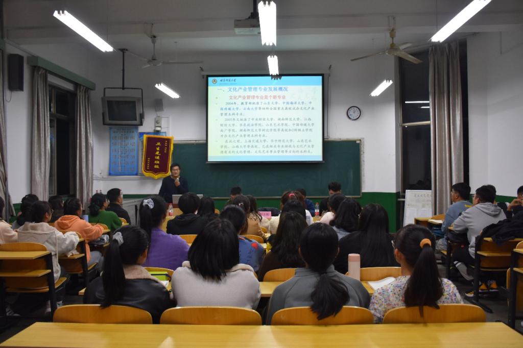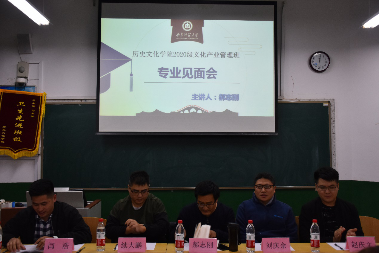 11月6日晚,2020级文化产业管理专业师生见面会在文史楼405教室举行。快猫视频 郝志刚老师、刘庆余老师、续大鹏老师、赵庆文老师以及2020级辅导员闫浩出席了见面会。见面会由闫浩主持,郝志刚老师主讲。