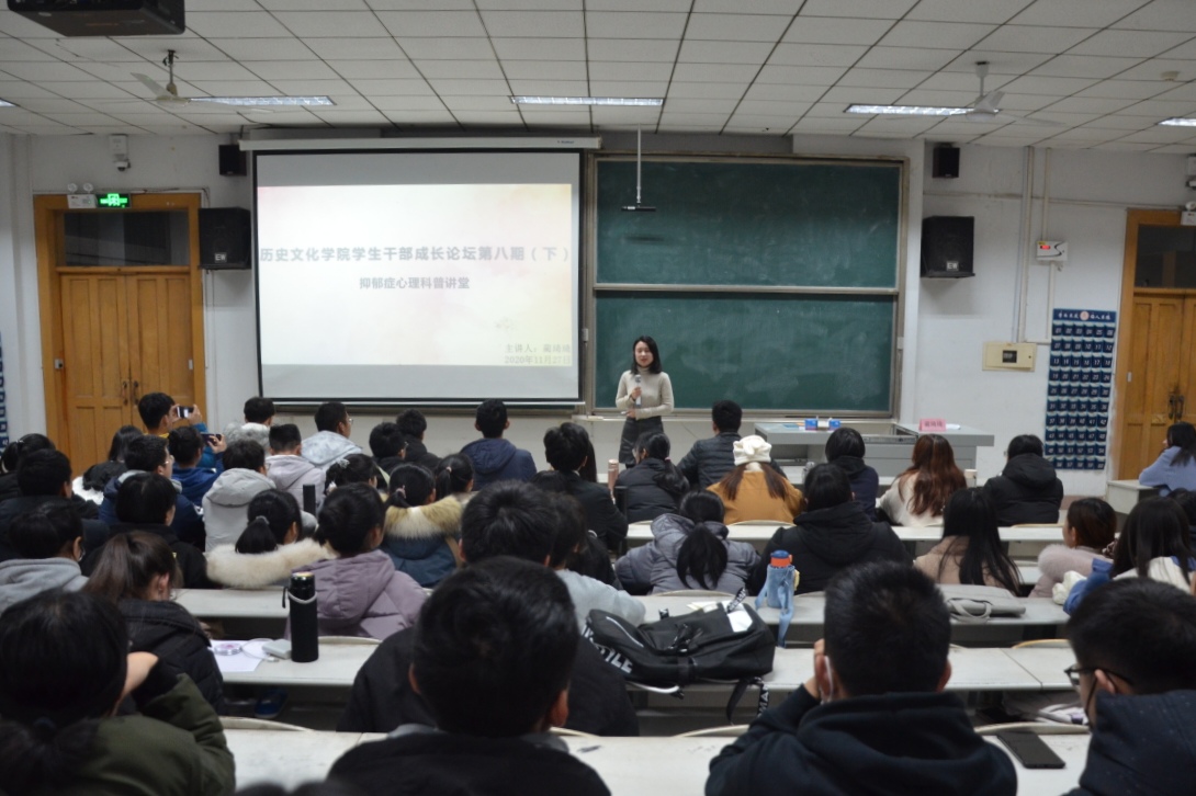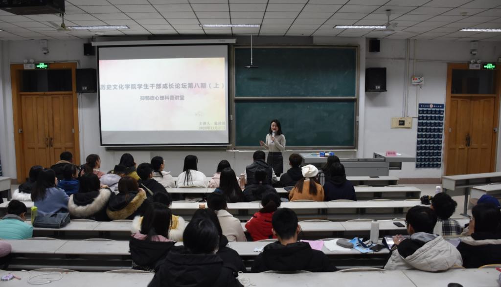 11月27日晚,快猫视频 举办2020年第八期学生干部成长论坛之抑郁症心理科普讲堂。论坛邀请2018级辅导员蔺琦琦作为主讲人。快猫视频 各班的心理委员、班长、团支书、副班长、副团支书以及各宿舍的宿舍心理信息员参加会议。 会上,蔺琦琦从心理信息员的角色定位、大学生常见心理问题成因和如何识别心理问题三个问题展开。同时,蔺琦琦向同学们科普抑郁症知识,并针对大一到大四同学普遍出现的心理问题,提出了解决建议。 抑郁症心理科普讲堂的举办,向同学们普及了抑郁症的相关知识,帮助同学们科学地认识抑郁症,走出认知误区,有利于增强大学生自我心理保健意识,营造了关注心理健康、了解心理健康、重视心理健康的良好氛围。