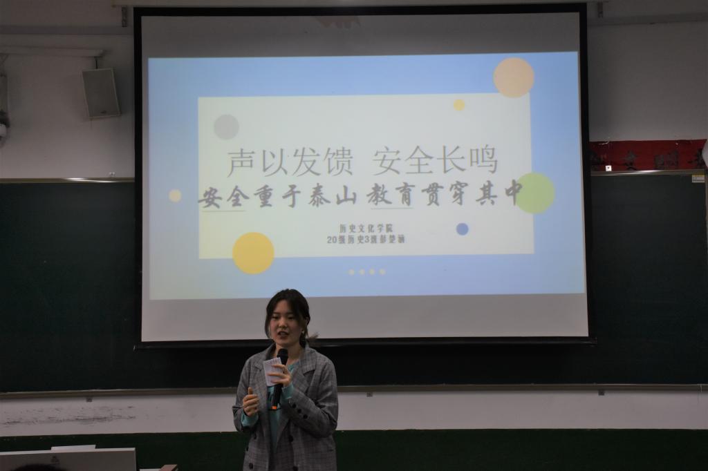 为提高大学生安全意识和自我保护意识,引起同学们对校园安全的重视,4月21日下午,快猫视频 在文史楼302教室举办“声以发聩,安全长鸣”校园安全主题演讲比赛。比赛邀请快猫视频 骆明老师、2019级辅导员刘润欣老师、2020级辅导员闫浩老师出席比赛并担任比赛评委。 比赛以“声以发聩,安全长鸣”为主题,要求选手扣合“校园安全”进行主题演讲。选手们从身边实际出发关注同学们的校园安全,联系网络报道的校园安全实例,列举了“食品安全三条红线”、安全问题诉求通道等问题。选手们通过这次比赛展现了自己高超的语言表达能力,展示了自己独具特色的一面。经过激烈角逐,优胜者脱颖而出。 本次演讲大赛的举办,使选手们锻炼了演讲能力,提高了语言文化水平,加深了同学们对校园安全的理解,增长了同学们的校园安全知识,营造了良好的校园安全文化氛围,为校园安全宣传工作的进一步展开奠定了良好基础。