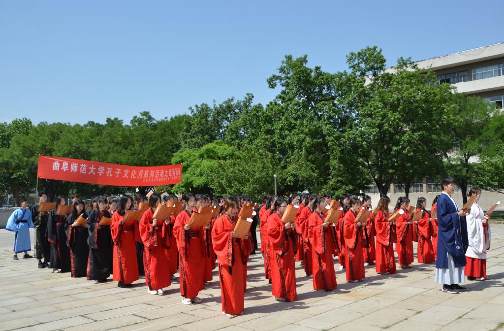 “子曰:‘志于道,据于德,依于仁,游于艺。’子曰:‘君子义以为质,礼以行之,孙以出之,信以成之。君子哉。’......”同学们身着汉家服饰、端庄大方,肃然起敬、回味经典,朗朗诵读声回荡在孔子文化广场。同学们声情并茂、抑扬顿挫的吟诵,使大家领略经典、感悟文化、享乐其中。经典选段不仅丰富了同学们的知识,更让同学们体悟到了中华民族优秀传统文化的魅力所在。