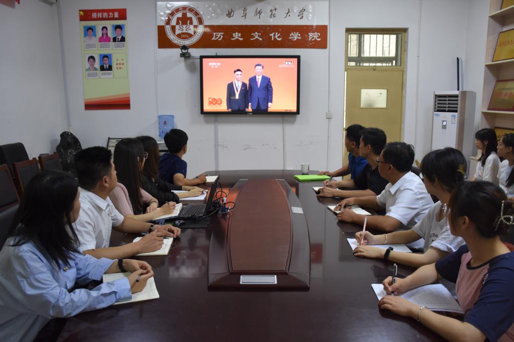 在热烈庆祝中国共产党成立100周年之际,6月29日上午,快猫视频 于文史楼204会议室、各班教室组织师生以直播和回放的形式观看“七一勋章”颁授仪式。