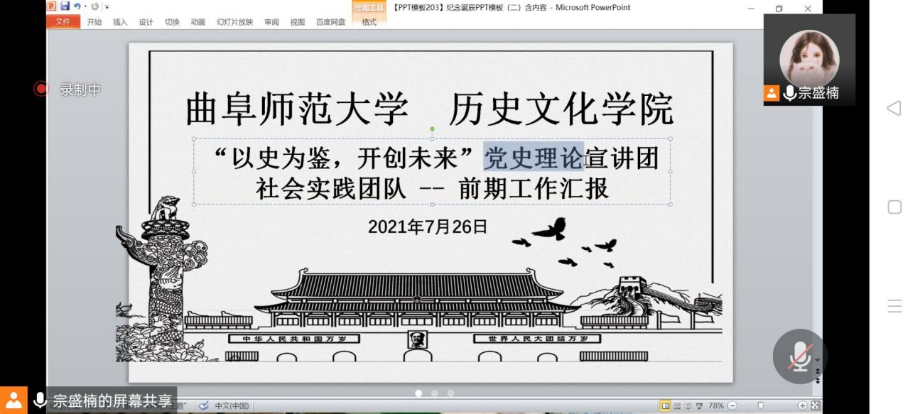 7月26日晚,快猫视频 “以史为鉴,开创未来”党史理论宣讲团通过腾讯会议召开线上会议,进行前期工作汇报。8月15日,团队成员在山东威海市荣成市开展党史理论宣讲活动。
