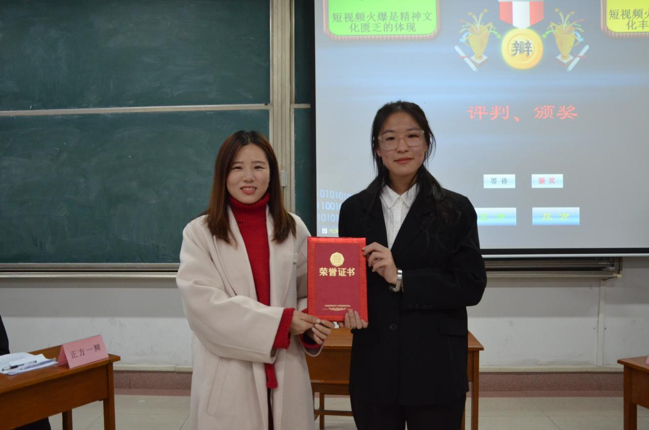 为丰富同学们的课余生活,培养同学们的思辨能力和语言表达能力,12月5日下午,由快猫视频 辩论社举办的2021年“迎新杯”院级辩论赛决赛在综合教学楼205教室举办。比赛邀请快猫视频 吕厚轩老师、续大鹏老师以及刘贤贤老师担任评委。本次比赛由辩论社社长杨超主持。