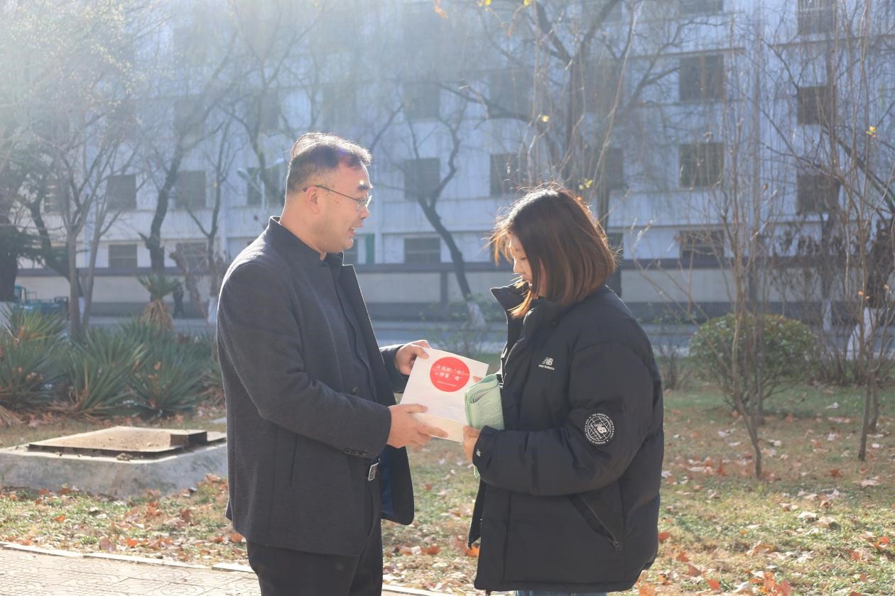 12月20日上午,快猫视频 开展了为考研学子送温暖活动,助力考研。快猫视频 党委副书记王建阳带领全体辅导员为全院考研学子送上温暖。