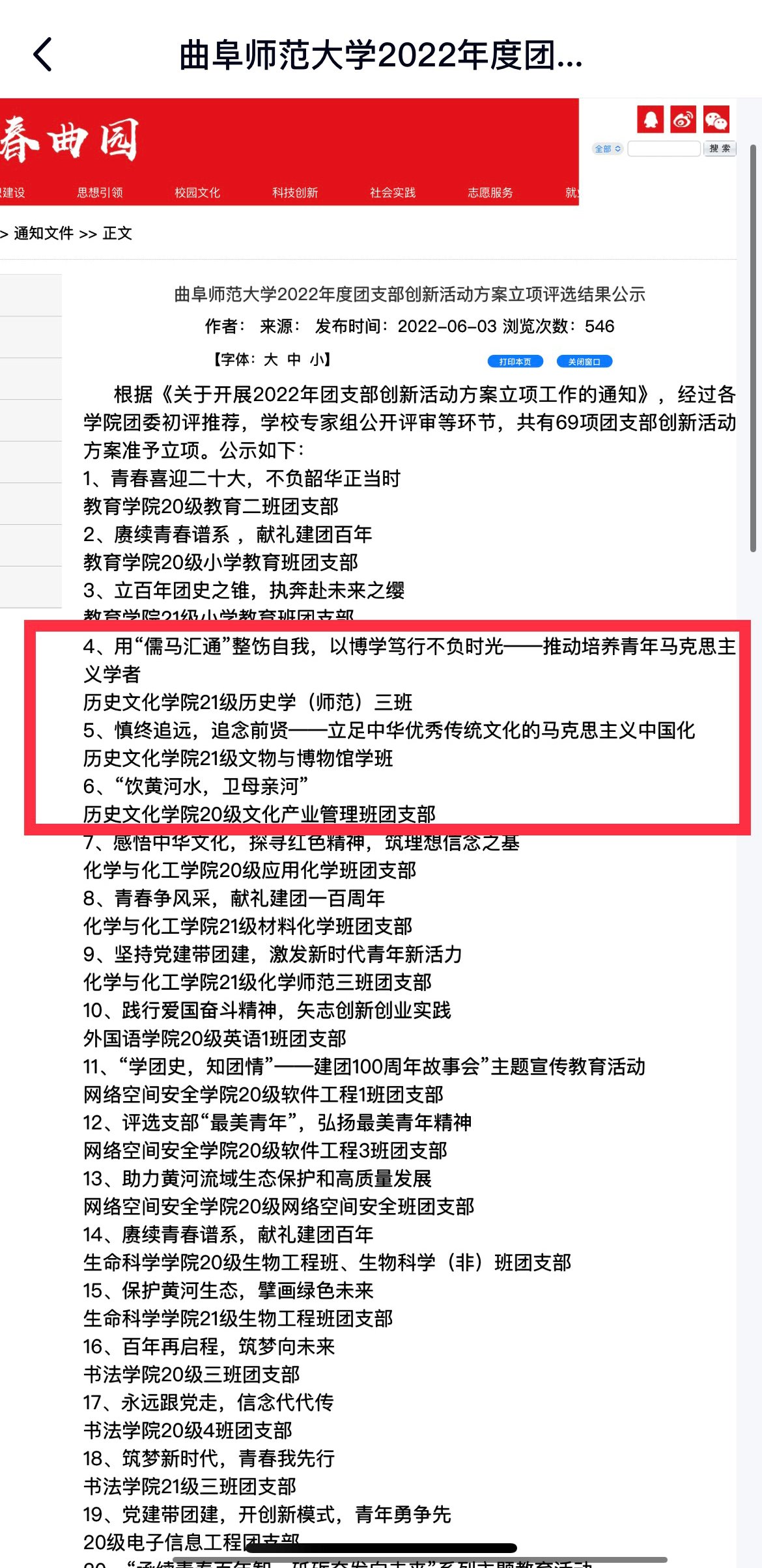 近日,快猫视频 2021级历史学(师范)三班团支部、2021级文物与博物馆学班团支部、2020级文化产业管理班团支部积极参与我校2022年团支部创新活动并成功立项。