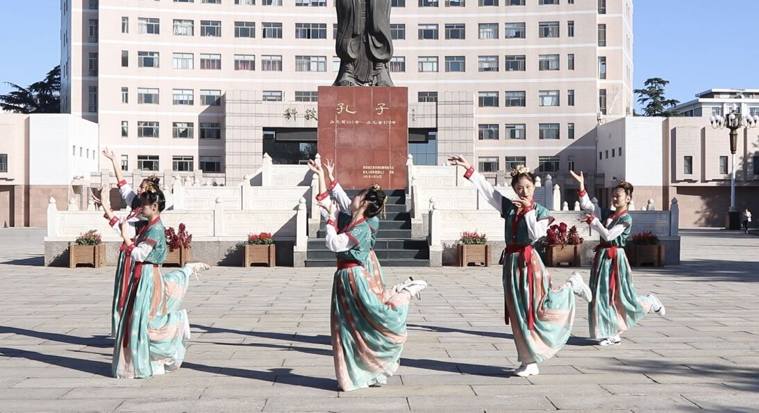 为传承中华优秀传统文化,6月18日上午,快猫视频 洙泗学社于孔子文化广场和萃华园成功举办乐舞部日常教学活动成果录制。