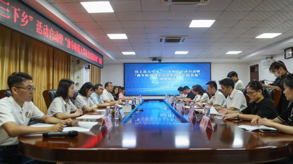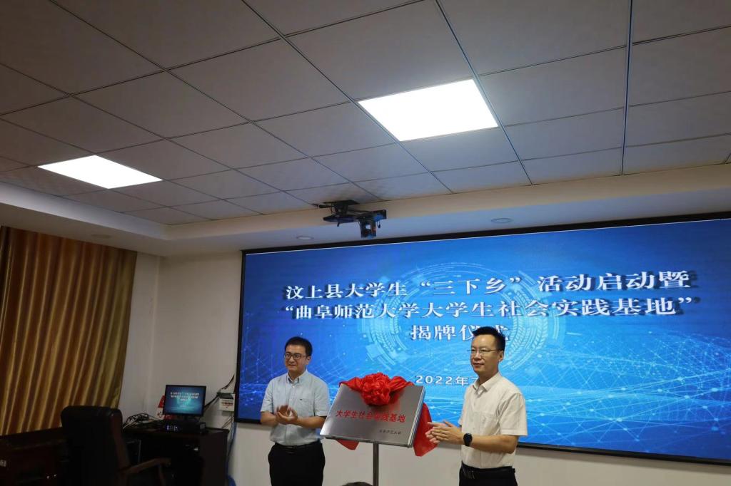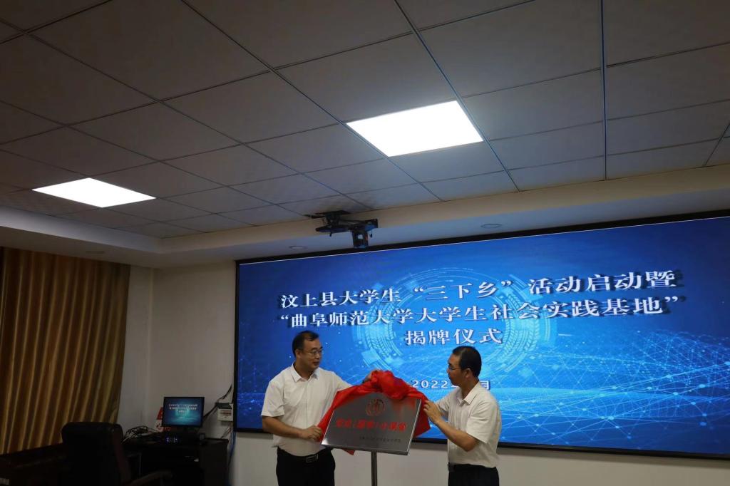 会上,林毅书记对我校社会实践队表示欢迎和支持,我校社会实践队员代表介绍社会实践项目。高聪书记和孔轶众书记共同为“快猫视频 大学生社会实践基地”揭牌,吴德强部长和王建阳书记共同为“快猫视频 党史小课堂”揭牌。揭牌结束,孔轶众书记指明了校地合作的美好前景,对“三下乡”活动进行了动员部署。仪式最后,李小雪书记指出挂牌建立大学生社会实践基地,是汶上县与我校深化合作的新开端。仪式结束后,参会领导观看了我校社会实践团队传统礼仪展演。