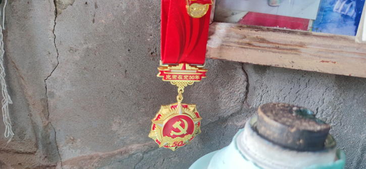 在实践活动中,团队成员走进老党员刘续存、何智慧家中,首先对本次实践活动的具体内容进行了简单的介绍,并对其接受采访表示了感谢。随后两位老党员向实践团队成员展示了其获得的“光荣在党五十年”的荣誉勋章,并向团队成员讲述了他们的自身经历。刘续存出生于1939年,入党已54年,曾任小队会计,在自己的岗位上埋头苦干、兢兢业业,与当时的翻身村大队长一起为翻身村的建设做出了突出的贡献,使翻身村名副其实,从经济落后的贫困村庄变成了欣欣向荣的新型乡村。何智慧入党已有50年之久,曾担任大队会计,始终坚守岗位,发扬吃苦耐劳精神,与刘续存老先生一起为翻身村的建设做出了自己的贡献。