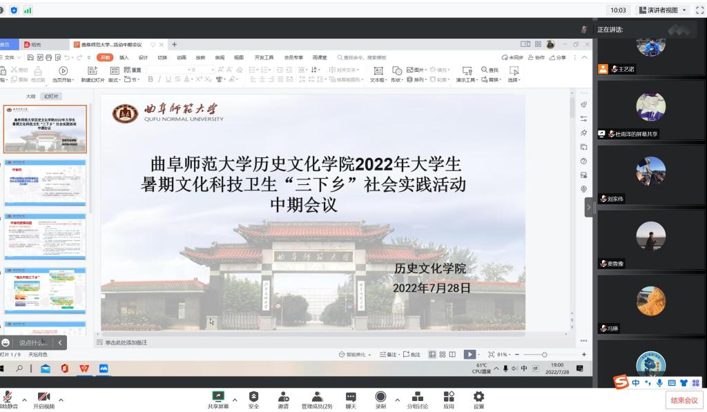 为推进快猫视频 暑期社会实践工作顺利进行,7月28日,快猫视频 召开2022年暑期文化科技卫生“三下乡”社会实践中期培训会议,本次会议主要针对社会实践投稿问题进行交流,杜雨泽担任主讲人。 在培训会上,杜雨泽强调在暑期社会实践活动的进行中,新闻投稿占重要环节。其中,中青网投稿,大众日报报送和优秀队伍素材收集尤为重要。接着,邸昕龙介绍了中青网投稿方式,并对中青网新闻审核问题和对接问题进行了详细讲解。中青网新闻审核常见问题包括态度问题,图片问题,标题电头和导语问题,实践实纪、感悟稿问题和实践图片稿问题。在实践团队与中青网对接问题上,对接交流工作尽量保证在自身稿件内容质量符合虫查网稿件审核规定的前提下进行,具体审核问题及时联系负责审核快猫视频 稿件的实习编辑,特殊问题可联系负责快猫视频 稿件相关工作的副站长。他强调,中青网投稿的成功数量将会在社会实践最后评比上占据较大比重,期望社会实践团队重视并积极投稿。同时,陈秀双就官网投稿问题指出,投稿新闻一定坚持原创,内容详实,图片干净整洁。随后,杜雨泽提醒实践队伍一定注意保存新闻链接、新闻图片、新闻稿作为实践报告内容,它将作为评选内容得分的一部分。最后,实践团队根据自身情况提出相关问题,他对同学们提出的问题进行了详细的回答和解释。 通过此次培训,使社会实践团队更近一步地明确投稿要求,提高了快猫视频 社会实践团队新闻质量,为后续暑期社会实践工作开展奠定基础,促进了快猫视频 暑期”三下乡”活动的顺利进行。