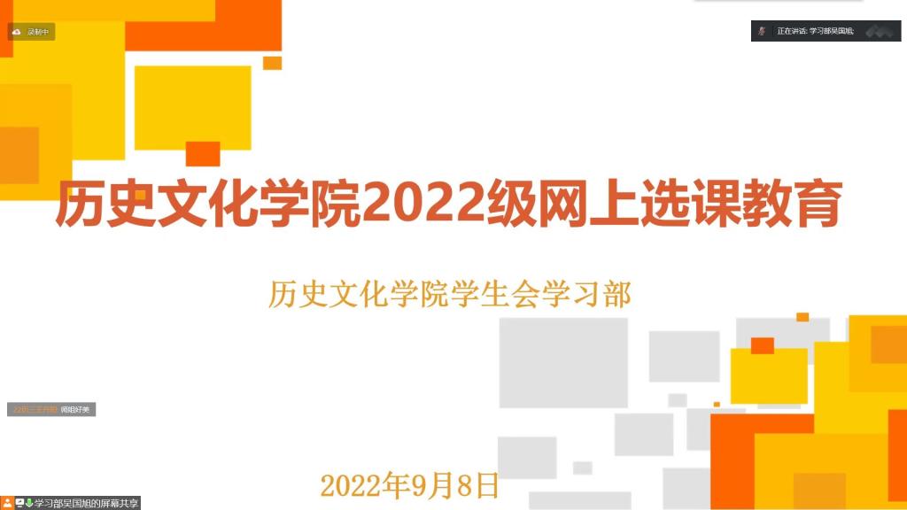 为使快猫视频 2022级新生尽快熟悉选课流程,帮助同学们按时、规范选课,9月8日晚,快猫视频 举办线上2022级新生网上选课经验交流会。学习部志愿者担任主持人,2022级全体新生以及各班级助理参加交流会。