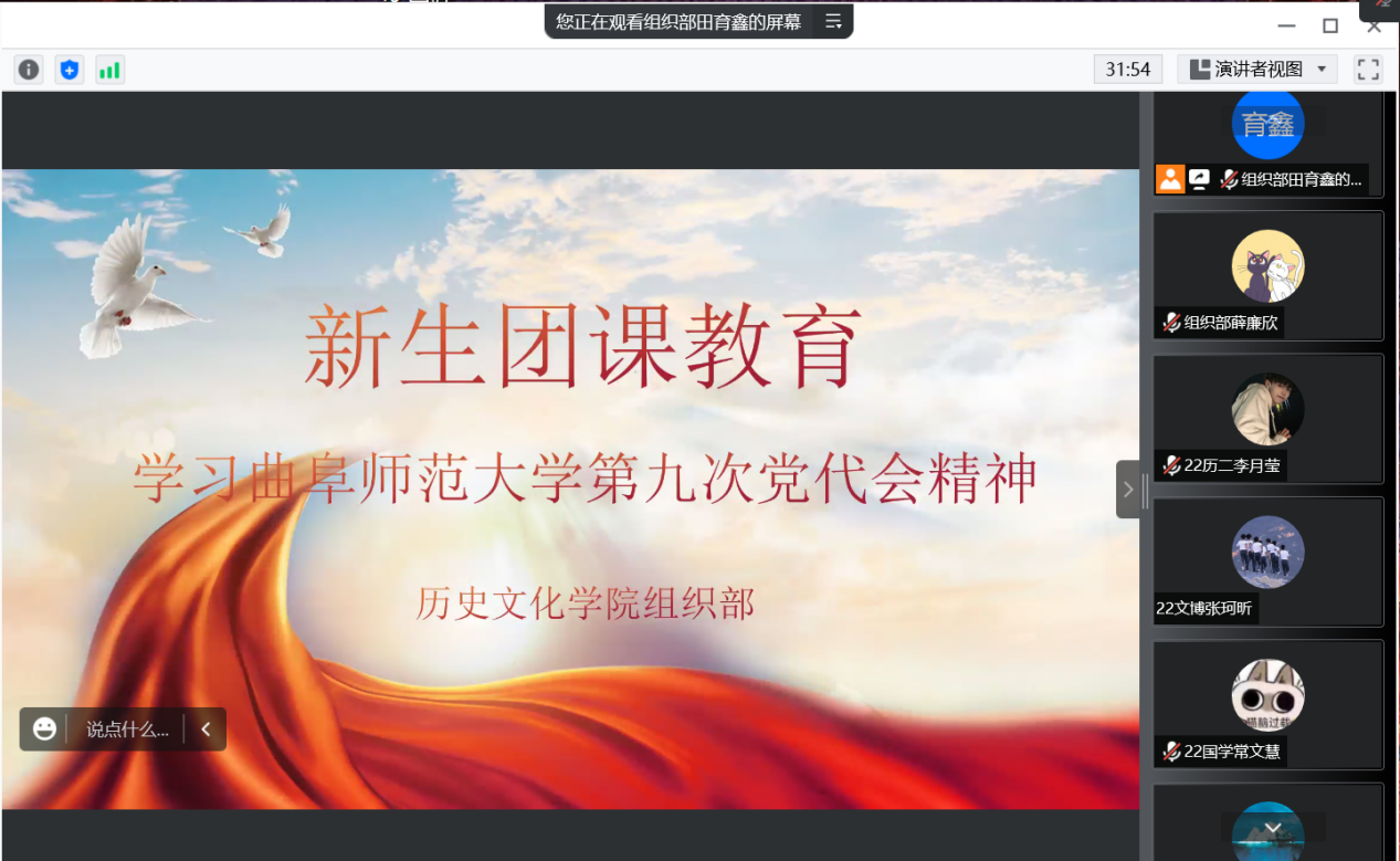9月27日,共青团快猫视频 委员会通过腾讯会议开展新生团课教育——学习快猫视频 第九次党代会精神。