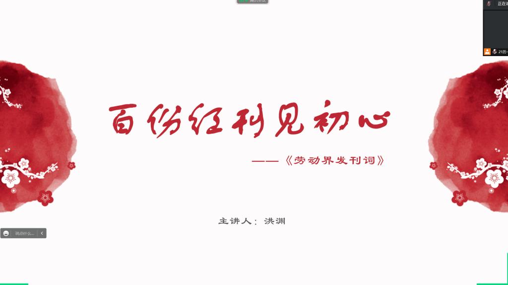 为加强学生对党史的了解,从党史中汲取精神力量,快猫视频 于9月11日晚举办读党史、悟初心读书会。本次读书会由张世慧老师指导,洪渊同学主持。
