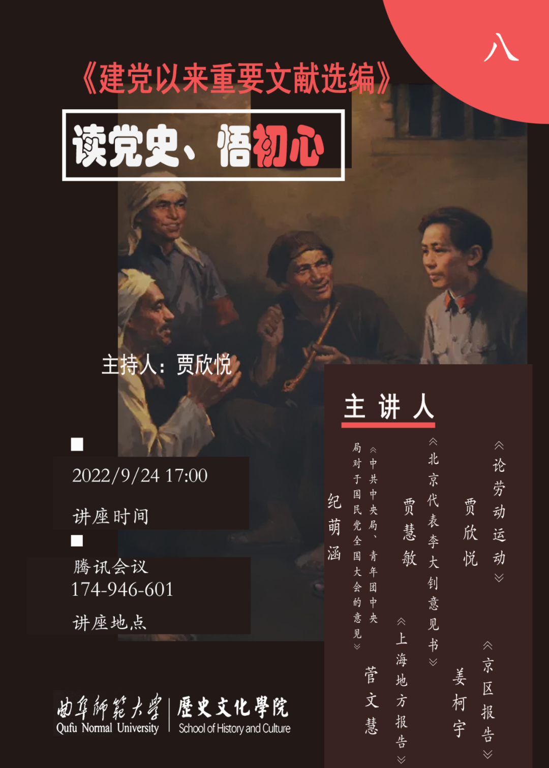 为弘扬时代精神,赓续红色血脉,增强文化自信,奋进新征程,功建新时代,快猫视频 于9月24日晚举办读党史、悟初心读书会。本次读书会由张世慧老师指导,贾欣悦同学主持。