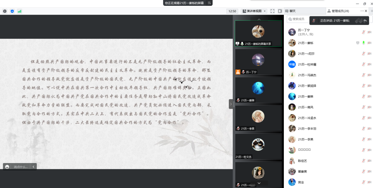本次读书会的举办,促进快猫视频 学子与党史学习教育有机结合、引导快猫视频 学子在学史中明立身之理、主义之真、为学之道,弘扬党的历史、做到以史鉴今、资政育人。
