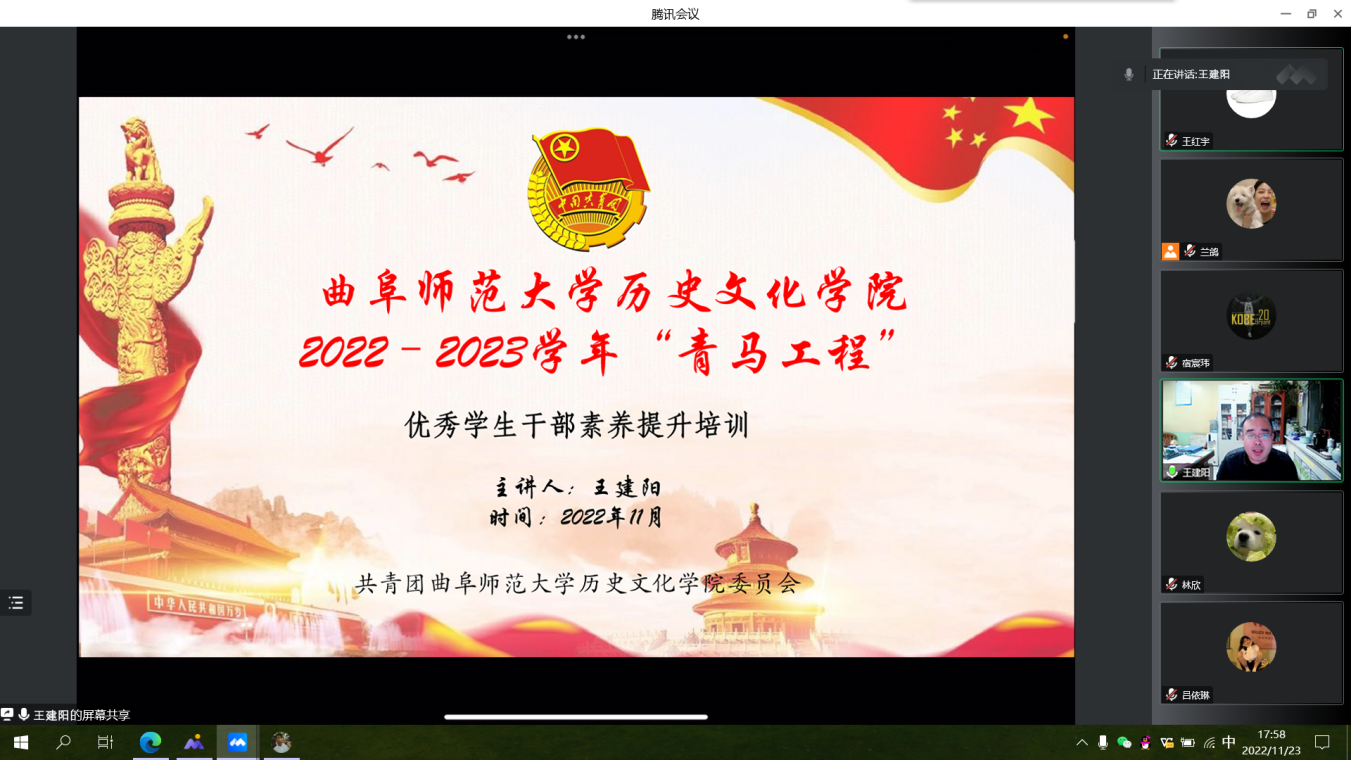 为学习贯彻党的二十大精神,提升学生骨干的理论素养、工作能力和实践水平,11月12日,快猫视频 开展了2022——2023学年“青马工程”第二讲——优秀学生干部素质提升培训。本次会议特邀快猫视频 党委副书记王建阳担任主讲人,快猫视频 青马工程班所有成员参加会议。