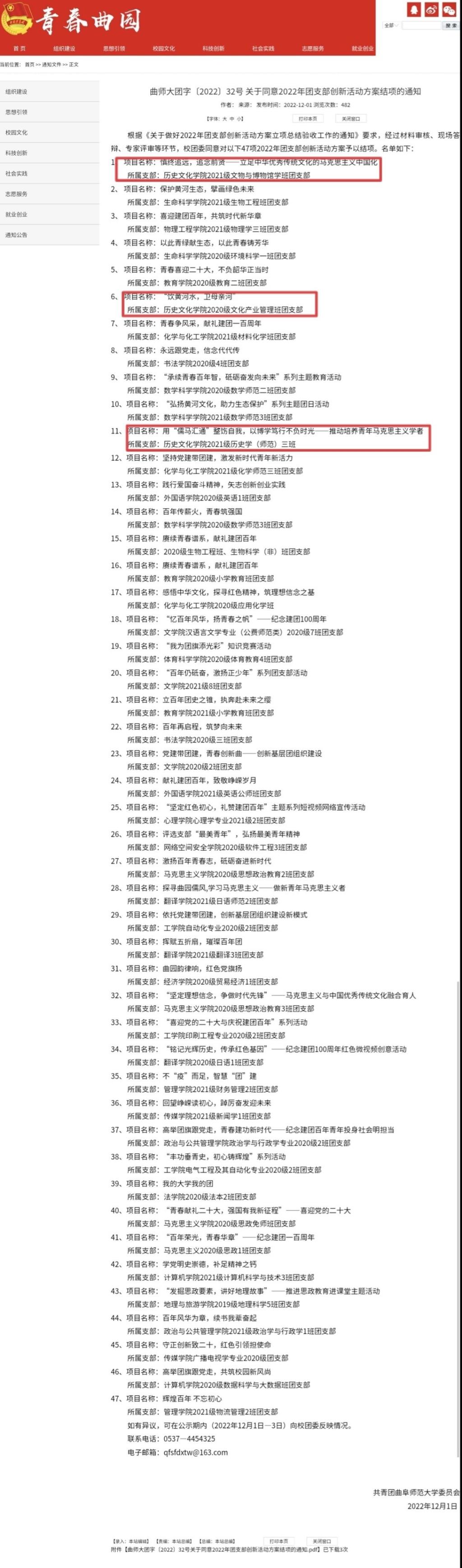 快猫视频 2020级文化产业管理班团支部项目“饮黄河水,卫母亲河”、2021级文物与博物馆学班团支部项目“慎终追远,追念前贤——立足中华优秀传统文化的马克思主义中国化”、2021级历史学(师范)三班项目“用‘儒马汇通’整饬自我,以博学笃行不负时光——推动培养青年马克思主义学者”均结项成功。
