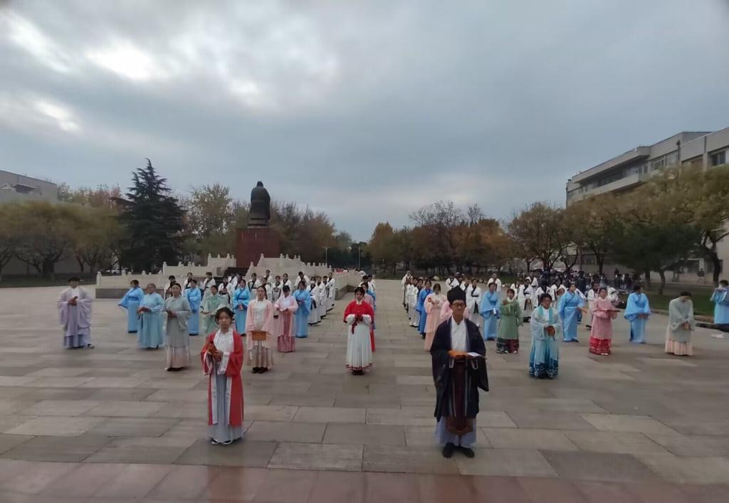 为激发学生学习祖国优秀传统文化的兴趣,帮助学生陶冶情操,10月31日,快猫视频 《论语》研修学社于孔子文化广场成功举办了“读经典,品国学”经典诵读活动。