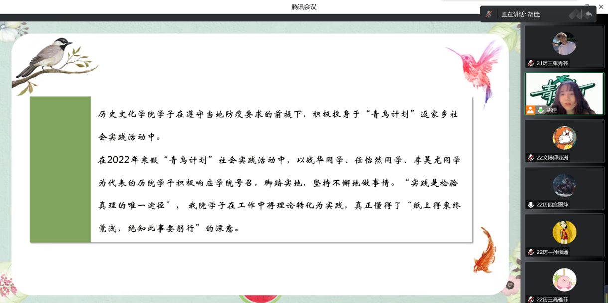 为深入学习并贯彻党的二十大精神,引导快猫视频 学子积极参与社会课堂实践。12月15日,快猫视频 举行“青鸟计划”线上宣讲活动。