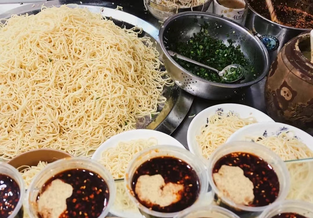 一座城市,一个味道。重庆万州是一座爱吃面的城市,“程凉面”这一招牌始创于光绪二十五年间,迄今为止已有百年多的历史。作为万州非遗美食的“程凉面”,酸甜麻辣兼容,拥有独特的重庆记忆。实践队员了解到,“程凉面”没有像众多非遗美食一样,拥有数十道复杂的加工工序,但每一道调料都是经过匠心制作。“程凉面”勇敢开创凉面的先河,将纯天然的芥末酱汁与凉面融合,形成极富韵味的“冲”力。“冲”劲夹杂着传统凉面的麻辣风味,使得凉面的风味更为醇厚,冲得恰到好处,冲到了非遗美食爱好者的心坎儿上,冲出了一条凉面发展的特色道路。“程凉面”在川渝周边地区打造出了属于自己的金字招牌,成为了川渝地区的特色名牌小吃。