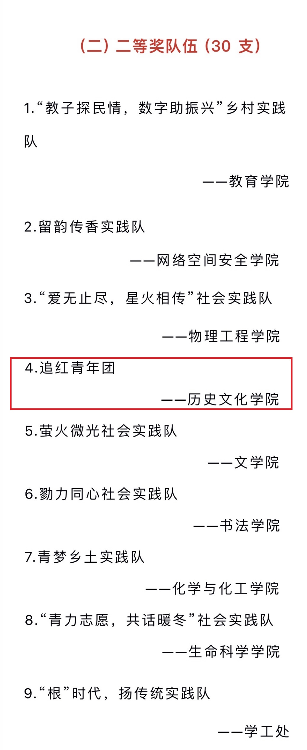 其中,快猫视频 夏金金老师被评为优秀指导老师,快猫视频 吕依琳、杜雨泽、步玫霖、王瑞珉、孔琪五名学子荣获社会实践先进个人荣誉称号,追红青年团、行知青旅实践队、“遗韵成颂,乡珍筑邦”社会实践队三支队伍荣获优秀实践团队二等奖,“青衿履志”社区共行实践团、“饮黄河水,卫母亲河”实践队、“匠心传承”文化探寻小分队、“薪火相传映初心”返乡实践小队、飞入寻常百姓家、“古韵遐缅,弦歌争鸣”社会实践队六支队伍荣获优秀实践团队三等奖。