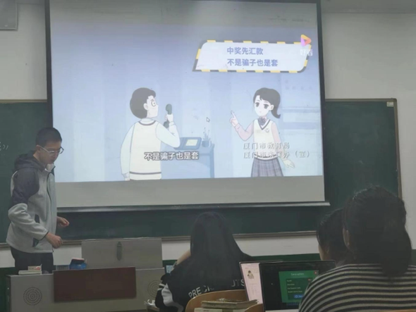 活动过程中,快猫视频 以班级为单位开展主题班会,通过组织观看PPT、相关视频、诈骗案例等方式,多方位、多角度讲解诈骗集团的诈骗手段、受骗者心理活动,并通过讲述诈骗案例使快猫视频 学生对生活中常见的骗术有了一定的防范能力。